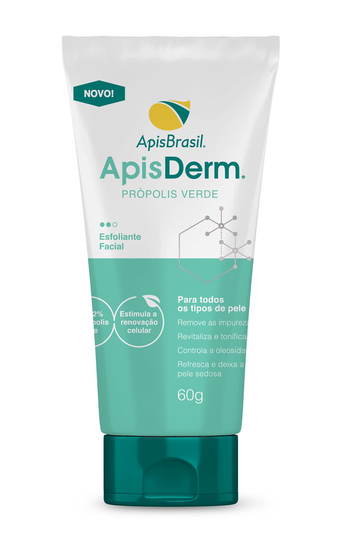 O esfoliante é o primeiro item da linha de cuidados com rosto chamada ApisDerm®. Ele utiliza o poder da Própolis Verde para remover as impurezas, revitalizar e tonificar a pele. Além disso, auxilia no controle da oleosidade, mantendo a pele sedosa e a sensação de frescor e pureza.