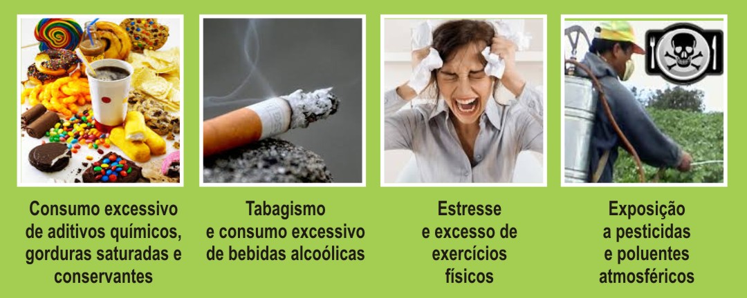 Como fatores que dão maior poder aos radicais livres, podemos citar o tabagismo, a poluição do ar, remédios (que tenham alguns oxidantes), radiações ionizantes e solares, maior consumo de gorduras, choques térmicos. Assim o organismo não tem como se livrar dos radicais livres, porém podemos nos prevenir deles. O melhor método de prevenção é através de alimentação rica em antioxidantes.